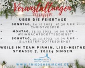 Neben einem zahlreichen Angebot an vielen Veranstaltungen unter der Woche, bildet für uns als Friedenskirche der sonntägliche Gottesdienst das Zentrum aller Veranstaltungen. Wir möchten eine Kirche für DICH sein, das heißt für Jung und Alt, egal welcher Nationalität und welchem persönlichen Hintergrund. Als evangelische Freikirche möchten wir in den Gottesdiensten das Evangelium – die gute Nachricht von der Liebe Gottes – allen Menschen in Wort und Tat weitergeben und jedem die Möglichkeit geben, Gott auf verschiedene Art und Weise suchen und finden zu können.