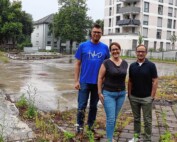 Unsere Gemeindeleiterin, Corinna Schön sowie Maximilian Stroscher, Leiter Bauausschuss und Alexander Höfflin, Architekt haben sich mit dem Südkurier zu unserem